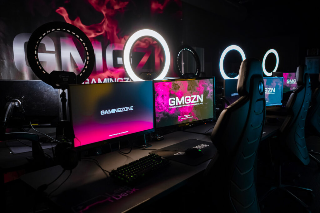Du suchst einen Ort, an dem du unter Gleichgesinnten mit neuester Hardware zocken kannst? Wir haben in unserer Gamingzone 5 PC-Plätze, die du alleine oder mit deinen Freunden buchen kannst. Alles was du brauchst – bis hin zur FPS-steigernden RGB Beleuchtung – ist installiert und wartet nur auf dich!