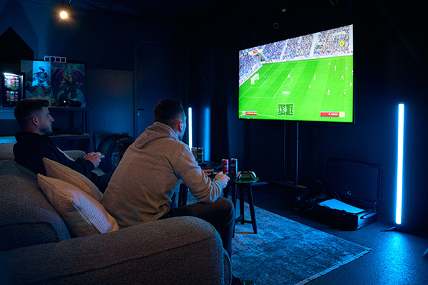 Deine eigene Lounge auf der Reeperbahn! Freie Konsolenwahl, 70 Zoll TV, ein Sofa auf dem du bequem mit drei deiner besten Freunde Platz findest, auf Wunsch ein randvoller Kühlschrank UND das Beste – du darfst deinen Emotionen bei Fifa freien Lauf lassen!